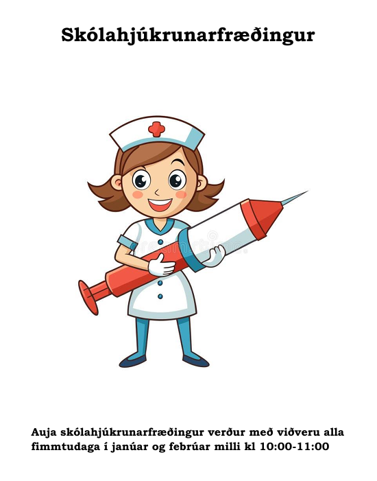 Auja skólahjúkrunarfræðingur verður með viðveru alla fimmtudaga í janúar og febrúar milli kl. 10:00-11:00