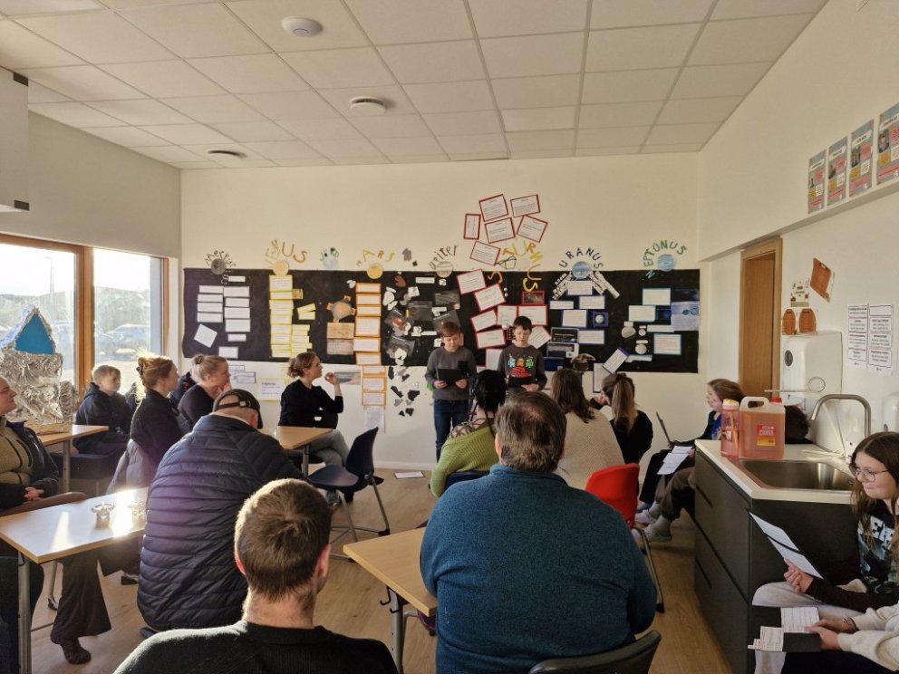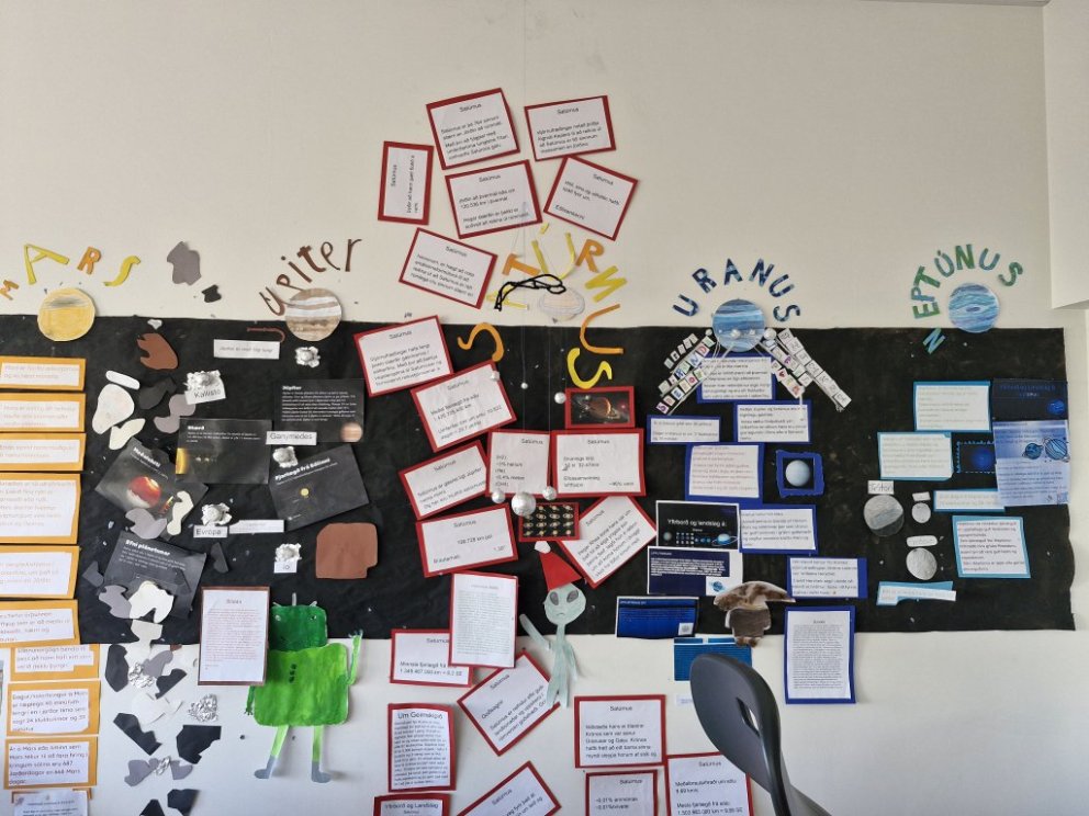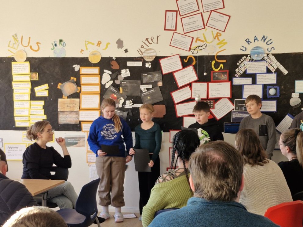 Á föstudaginn ríkti mikil tilhlökkun á miðstigi skólans þegar nemendur buðu foreldrum sínum á sérstakan foreldramorgun. Tilefnið var glæsileg kynning á verkefnum sem krakkarnir höfðu unnið að undanfarnar vikur. Þema verkefnisins var sólkerfinu okkar.