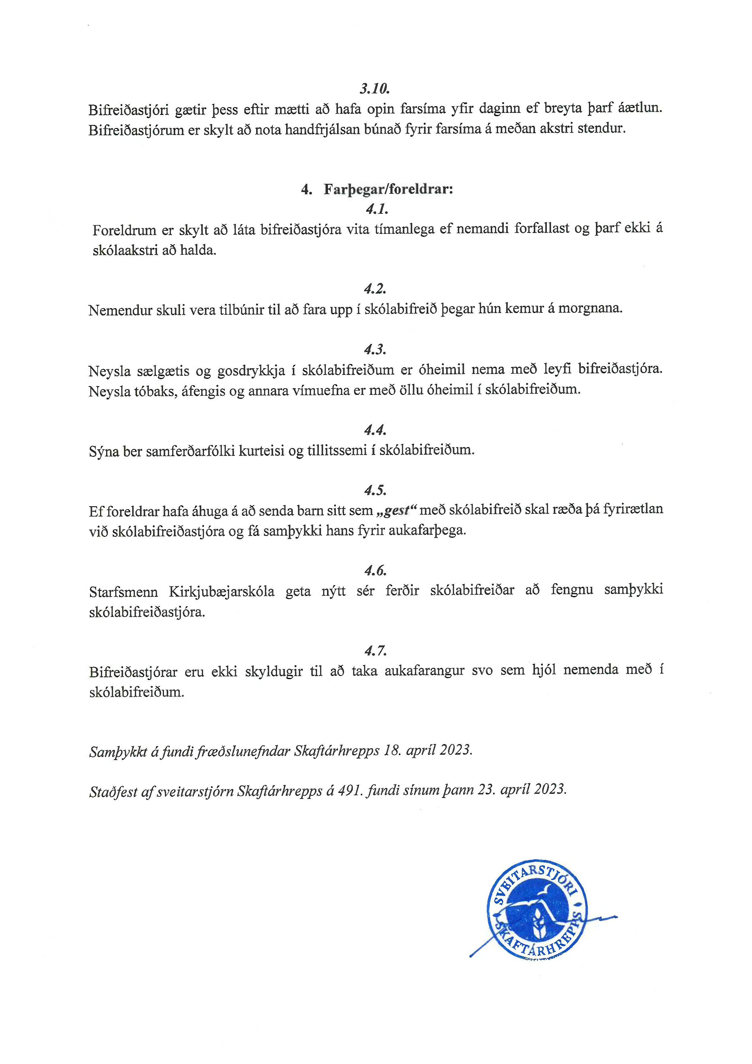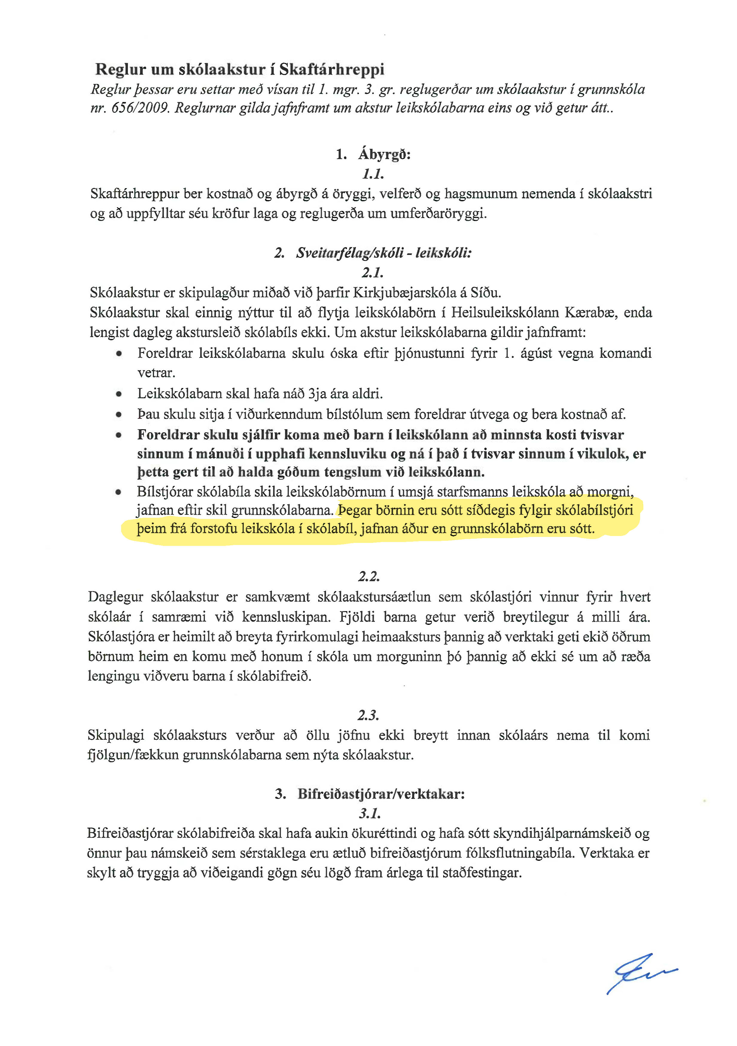 - Reglur um skólaakstur i Skaftarhreppi